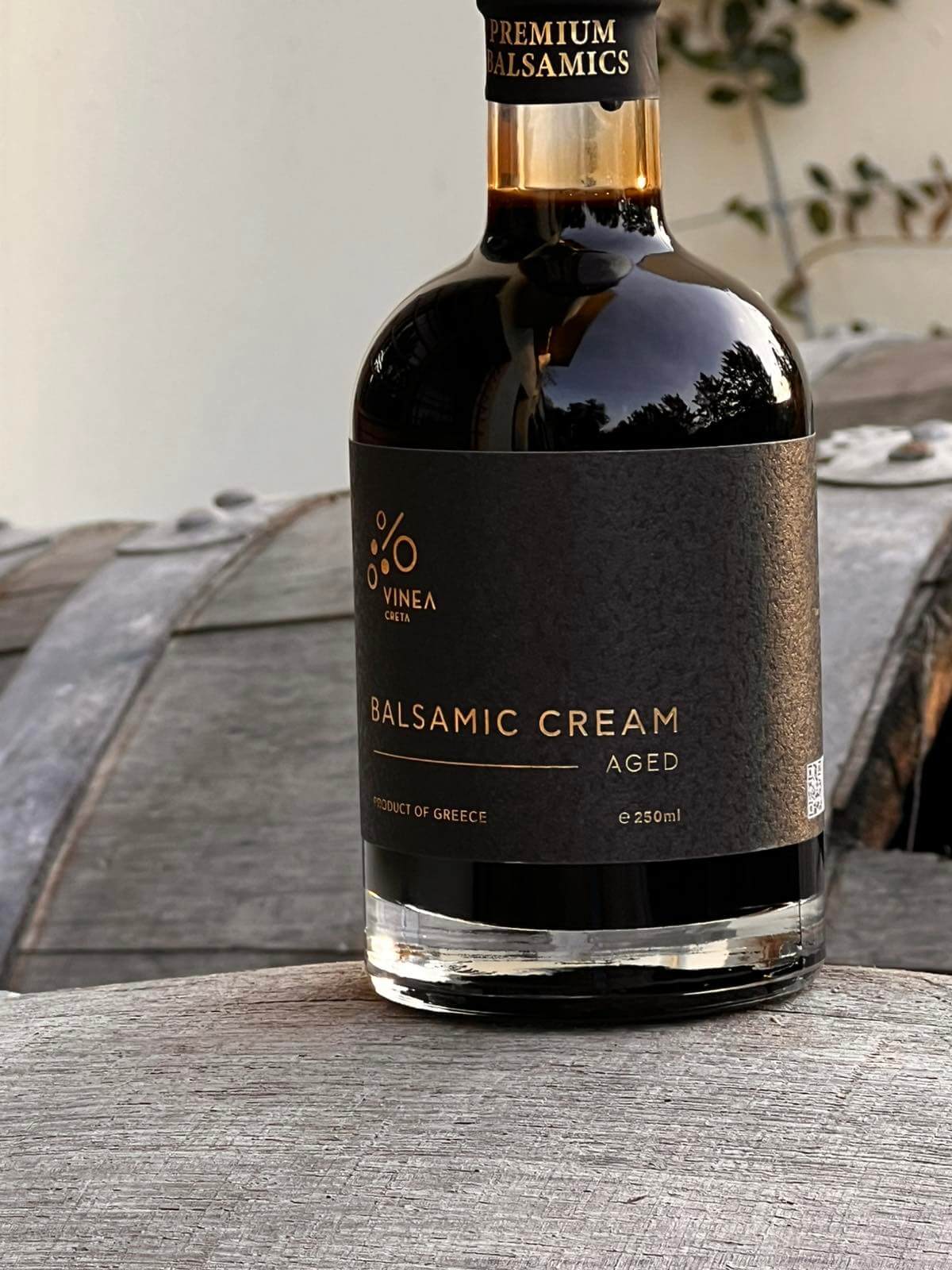 Vegan Τύπος Συσκευασίας / Γυάλινη ΦυάληΗ Παλαιωμένη Κρέμα Βαλσάμικου Vineacreta είναι μια βελούδινη κρέμα βαλσάμικου με πλούσιο σώμα και ισορροπημένη γλυκόξινη ένταση. Η παλαίωση της χαρίζει βάθος και ένα κομψό, “ζεστό” τελείωμα που απογειώνει κάθε σερβίρισμα με λίγες μόνο σταγόνες.