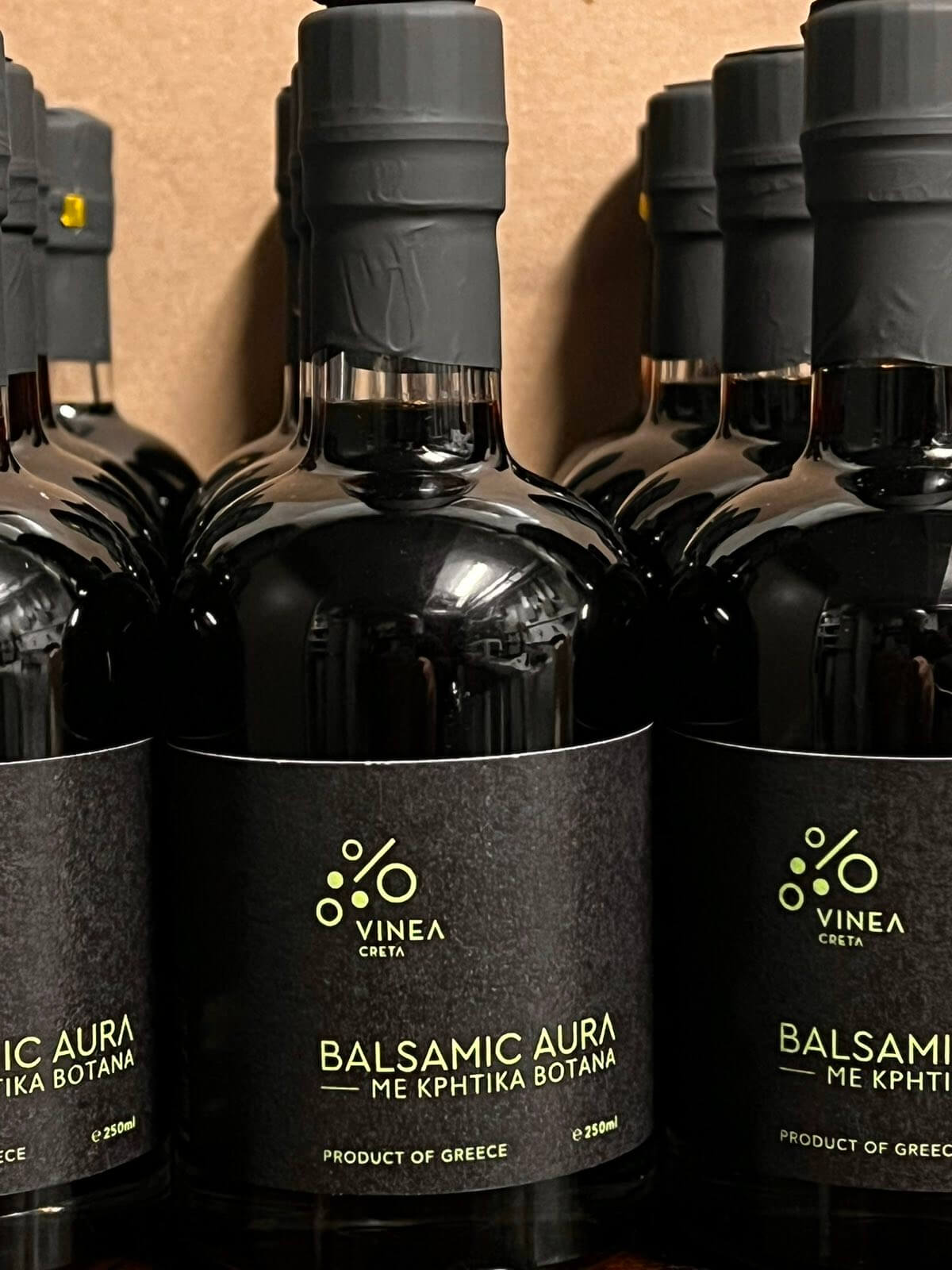 Vegan Τύπος Συσκευασίας / Γυάλινη ΦυάληΤο Balsamic Aura – Βαλσαμικό Ξίδι με Κρητικά Βότανα της Vineacreta είναι ένα αρωματικό, ισορροπημένο βαλσαμικό ξίδι που συνδυάζει ξίδι από κρητικά σταφύλια, συμπυκνωμένο μούστο και φυσικά αρώματα βοτάνων (θυμάρι, δενδρολίβανο, θρούμπη). Προσφέρει κομψή οξύτητα, διακριτική γλυκύτητα και ένα βοτανικό τελείωμα που αναβαθμίζει εύκολα κάθε πιάτο.