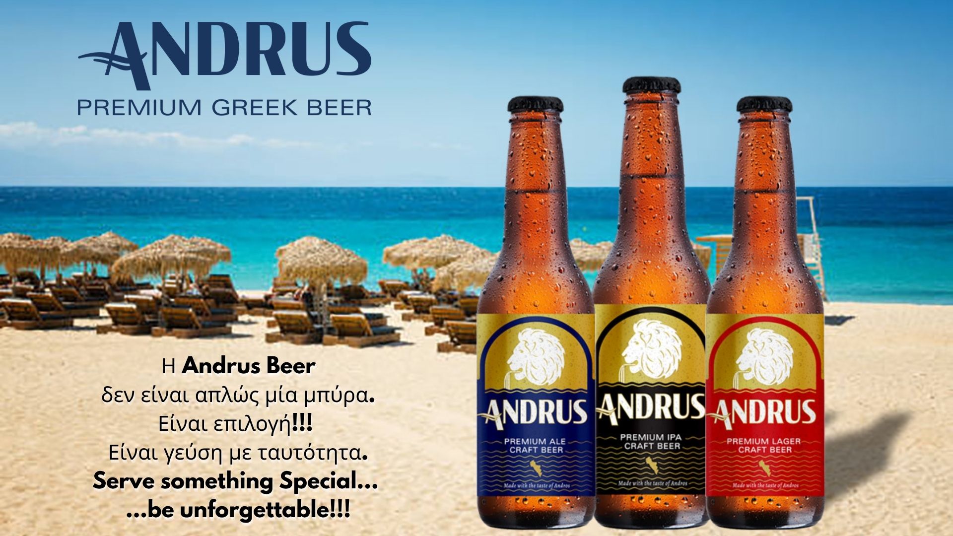 Andrus Beer is the first beer of Andros, a product created with the aim of giving the island its own distinct identity in the world of beer.
