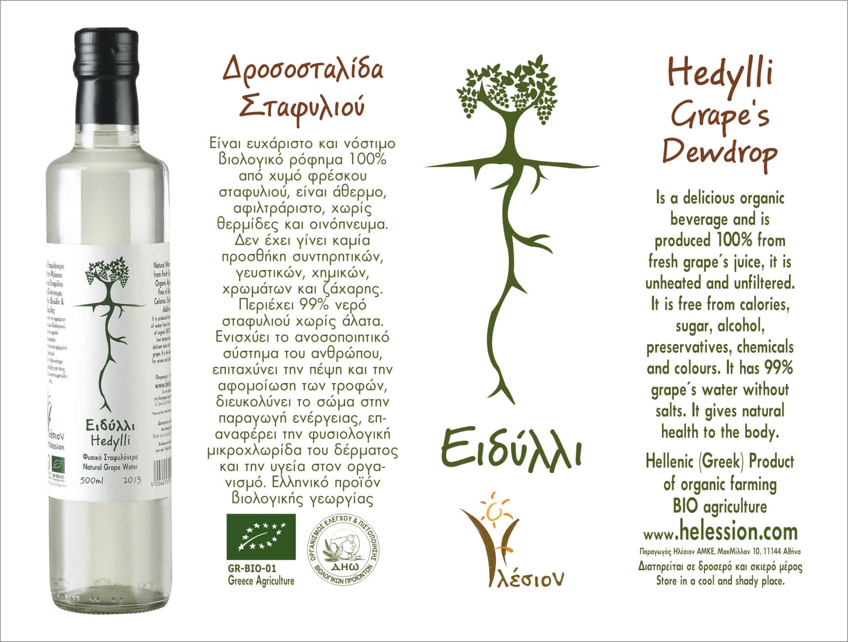 Hedylli is produced 100% from fresh organic grape’s juice and it is unheated and unfiltered. It is free of alcohol, calories, sugar, preservatives, flavor additives, chemicals and colors. It is 99% water without salts!